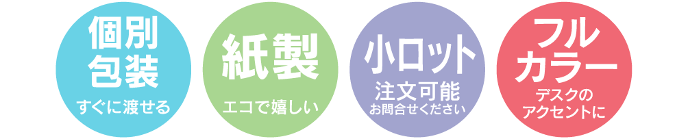 卓上カレンダーは、社名やロゴを入れて配布できる実用的なノベルティです。1年を通して使われるため宣伝効果が高く、不要になりにくい点が特徴です。